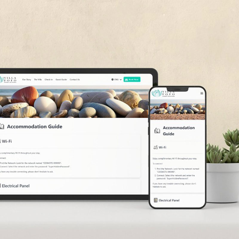 Ο Οδηγός Καταλύματος είναι διαθέσιμος στον επισκέπτη 24/7 κατά τη διάρκεια της διαμονής του, από οποιαδήποτε συσκευή, χωρίς να χρειάζεται να κατεβάσει κάποια εφαρμογή.